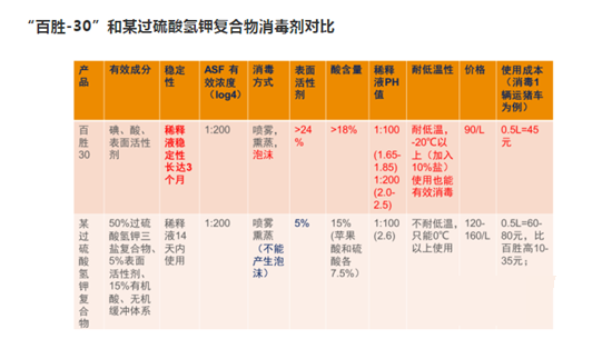 碩騰的復合碘、酸消毒劑“百勝-30”和復合戊二醛長效消毒劑“瑞全消”都通過了OIE在南非的非洲豬瘟參考實驗室(OVI實驗室)的測試,達到Log4殺滅的要求,在推薦使用下可以確保殺滅非洲豬瘟病毒。